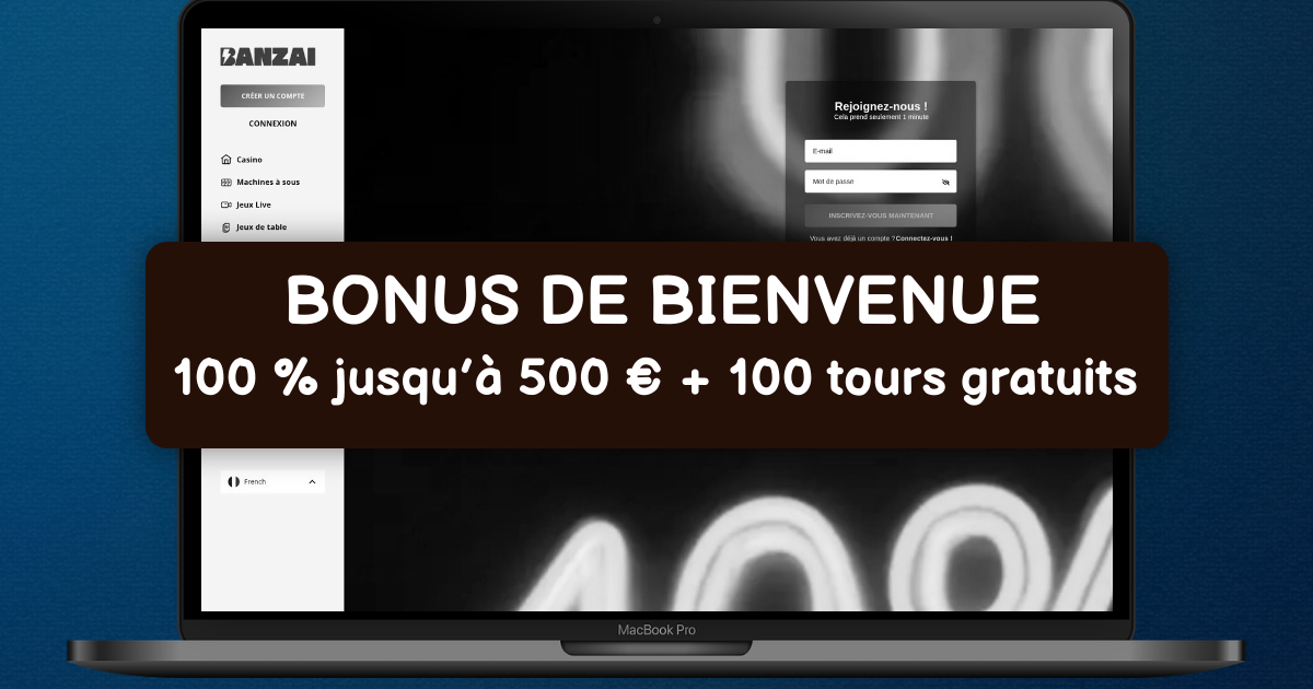 Inscription sur Banzai Casino reste rapide et cadrée pour la France. Bonus de bienvenue de 250 € + 200 tours gratuits sans mise, avec activation simple depuis le site officiel du casino en ligne.